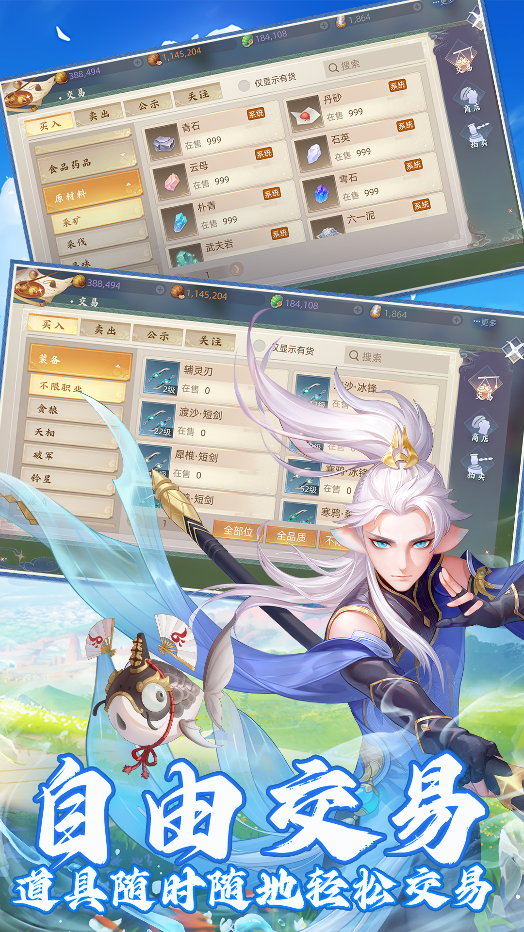 极品装备全靠掉落,海量未绑定道具、休闲活动所得道具、二代元兽蛋、生活技能产物等,均可在集市看到,打造多样化市场,更有活动等你参与。